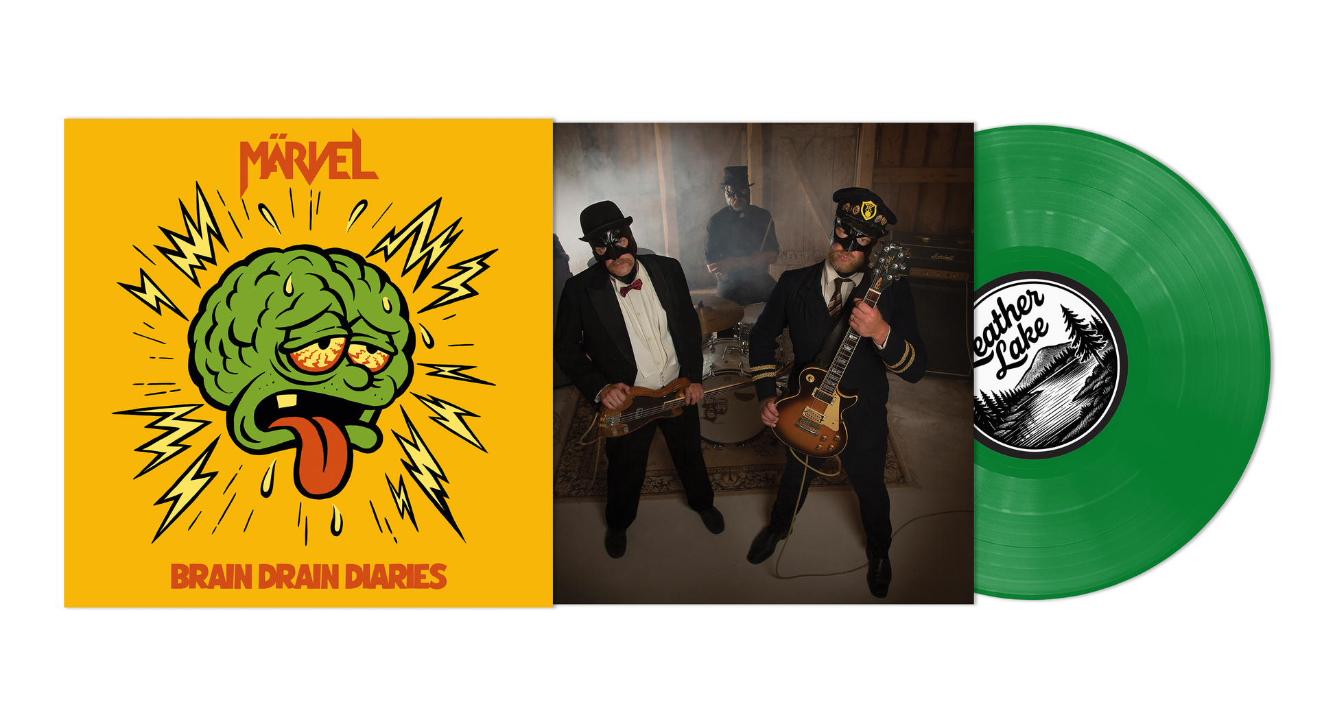 Brain Drain Diaries, first press 300 copies limited edition on poisonous green vinyl. Released by Leather Lake in collaboration with Ghost Highway Records.